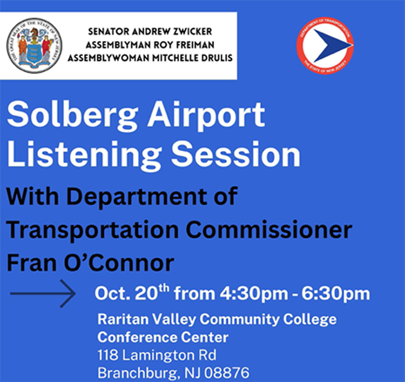 Monday, October 20, 2025 from 4:30 PM to 6:30 PM at the Conference Center, Raritan Valley Community College. RSVP at tinyurl.com/ld16airport Questions to aswdrulis@njleg.org